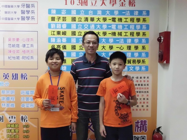 恭喜唐子恩、洪紹鈞(圖右起)2位小朋友榮獲獎學金,