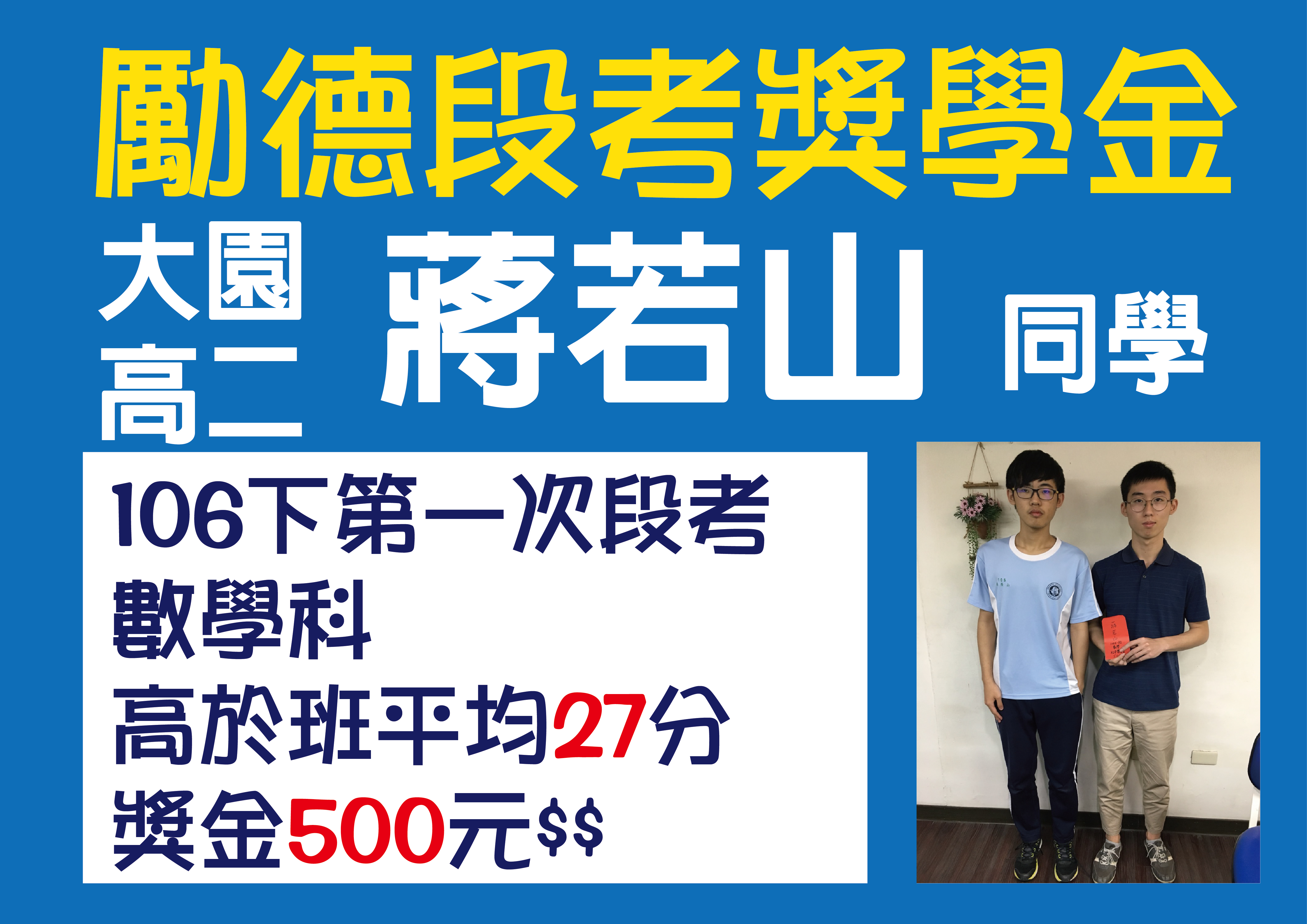 ▍106下第一次段考 ▍頒發獎學金第二波