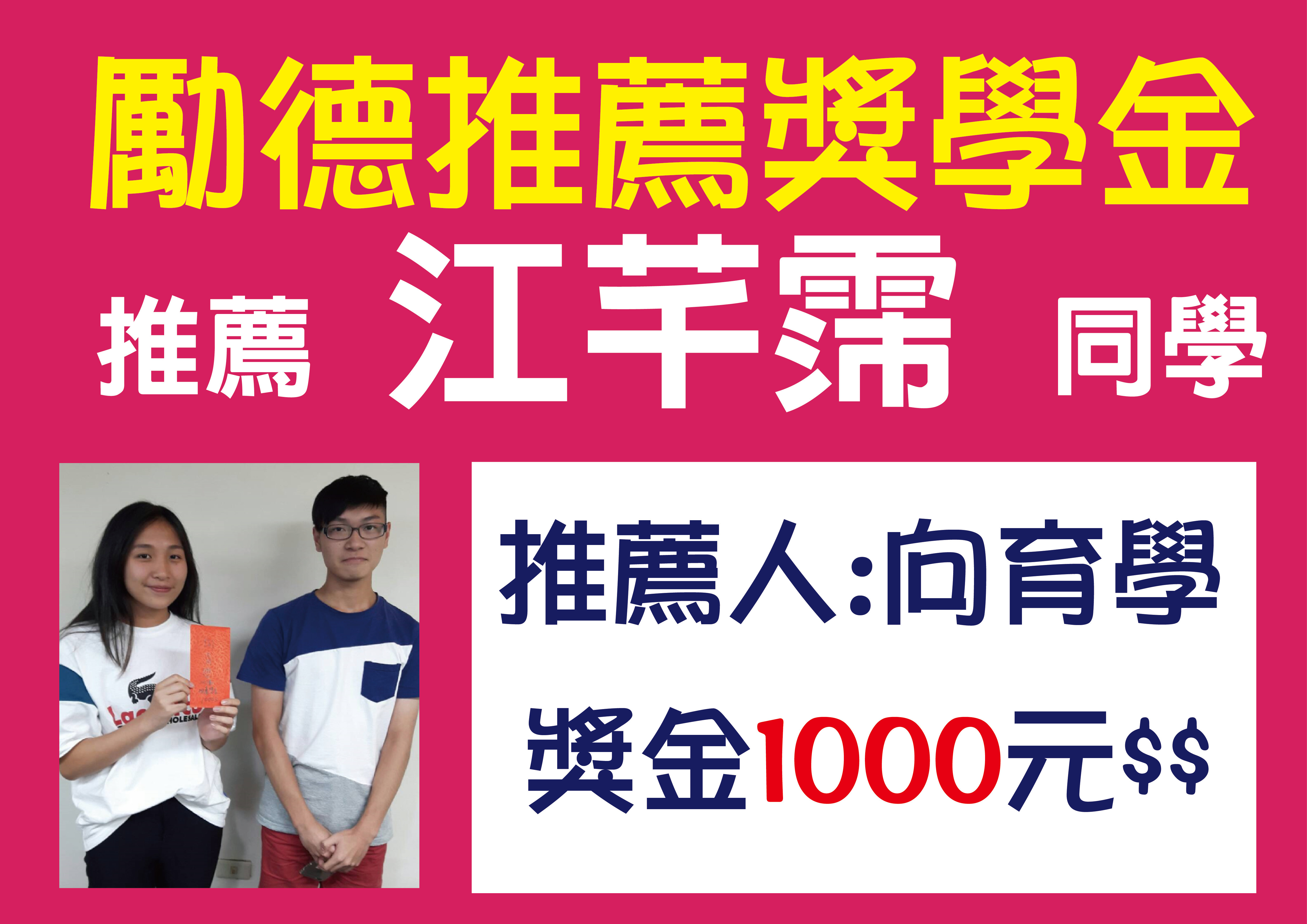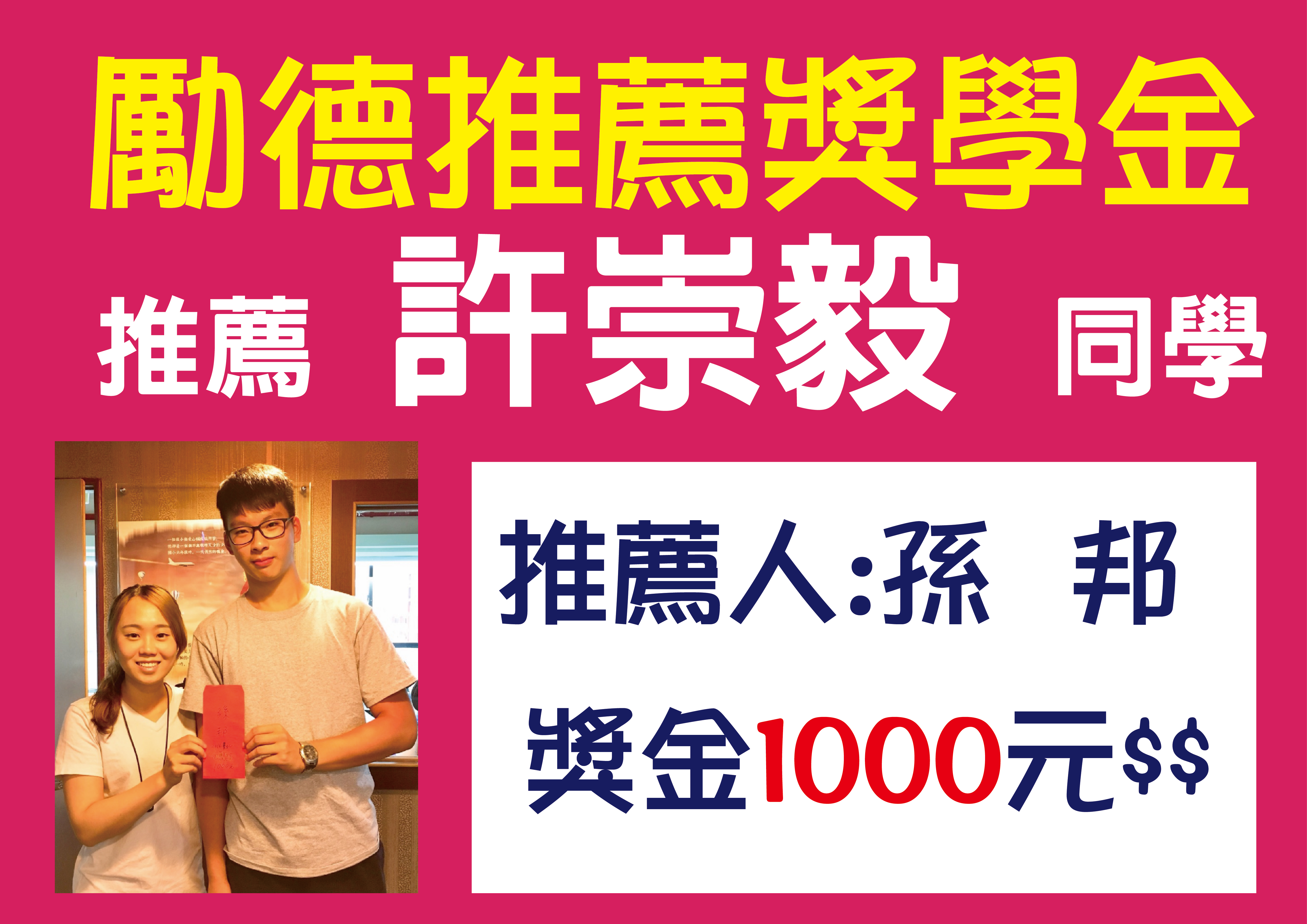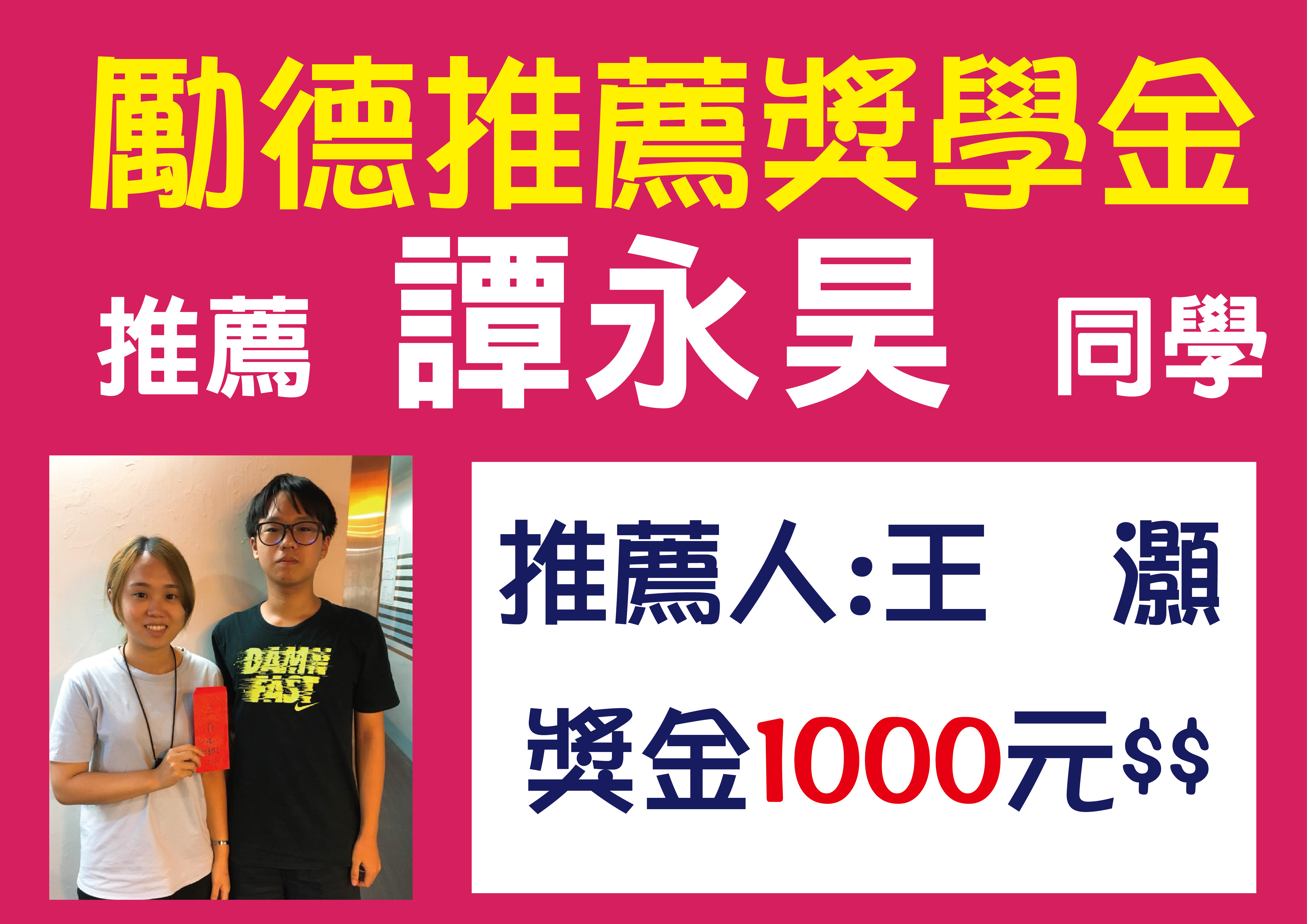 ▍推薦同學來勵德 ▍頒發獎學金囉
