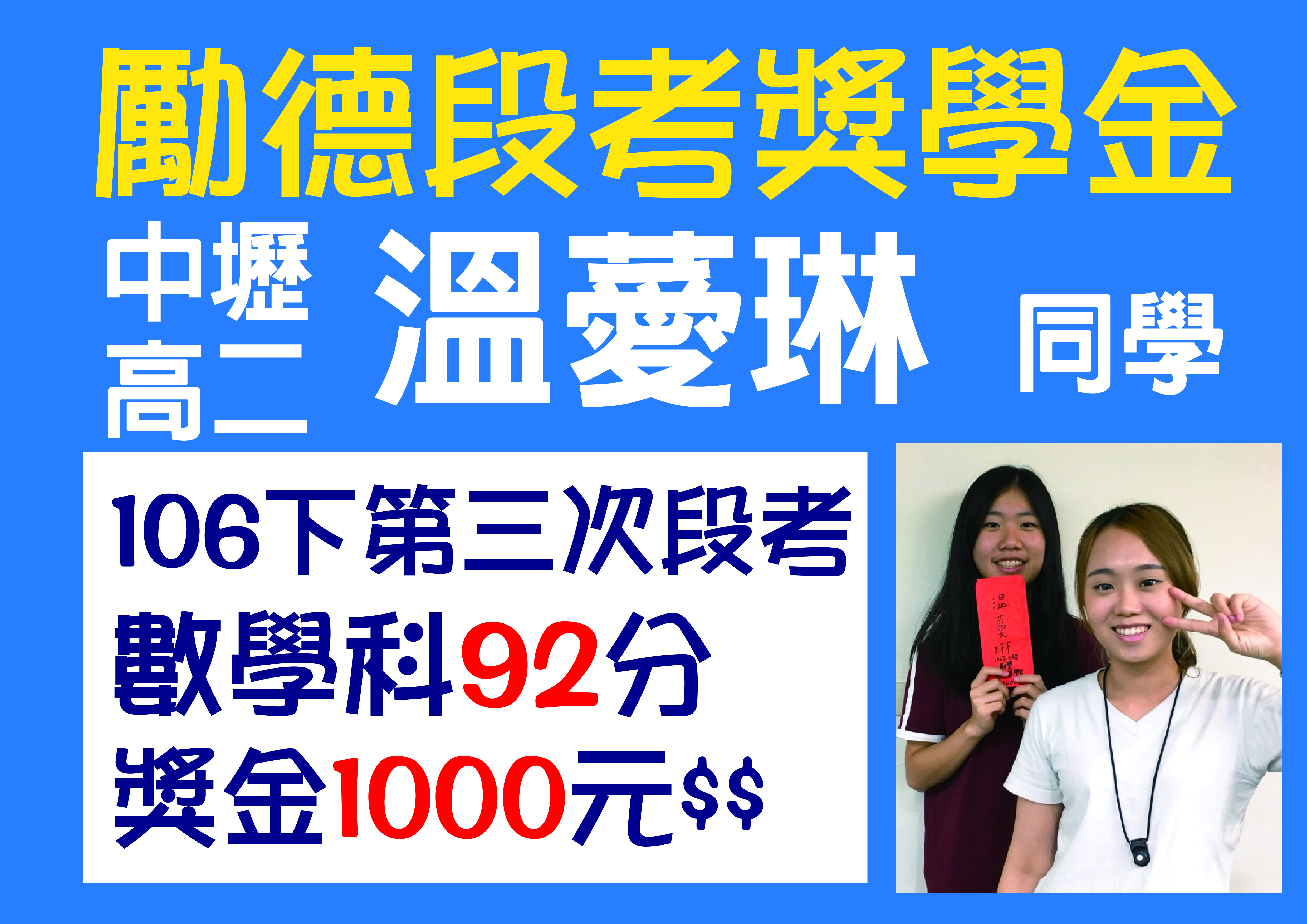 ▍106下第三次段考 ▍頒發獎學金囉