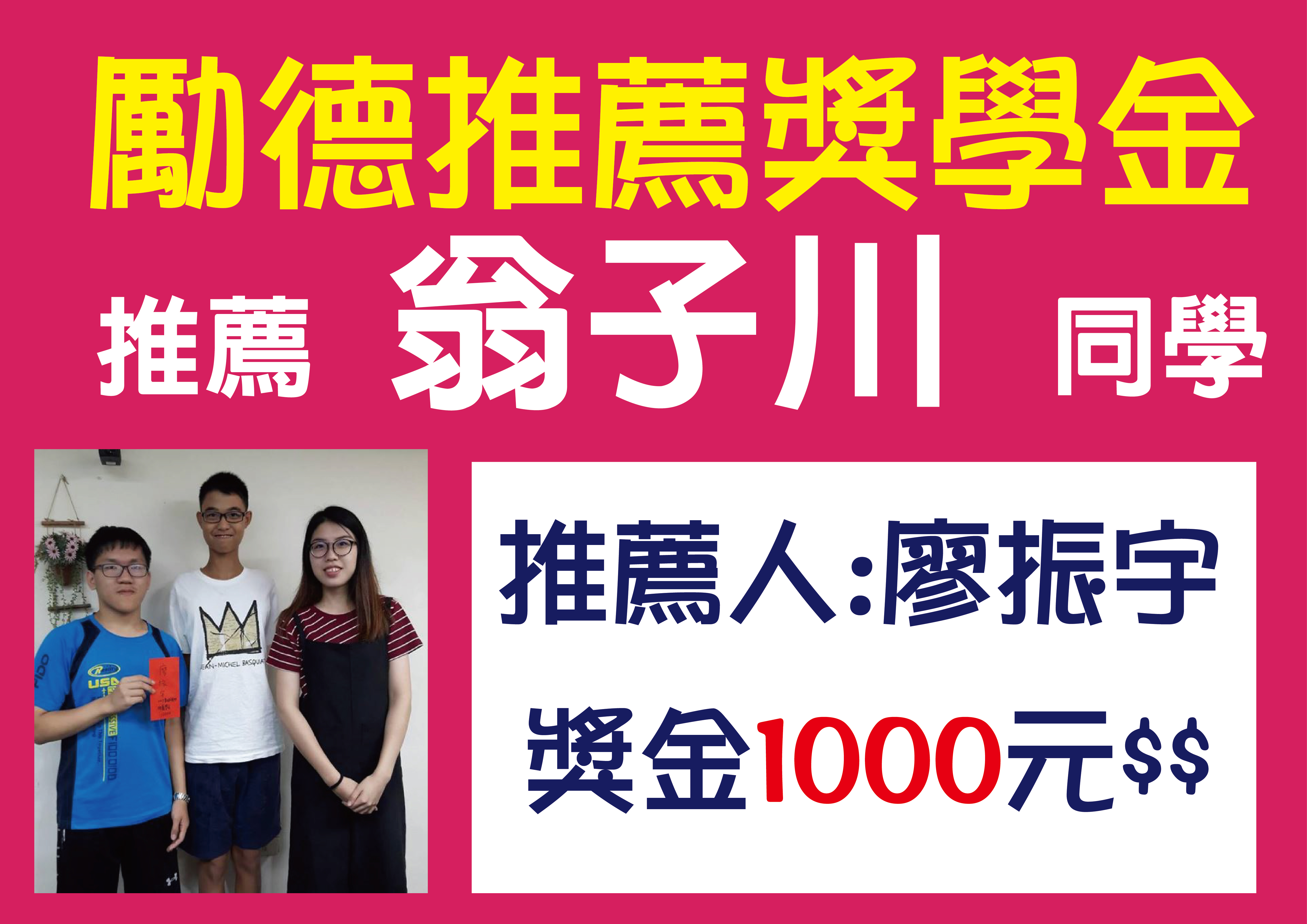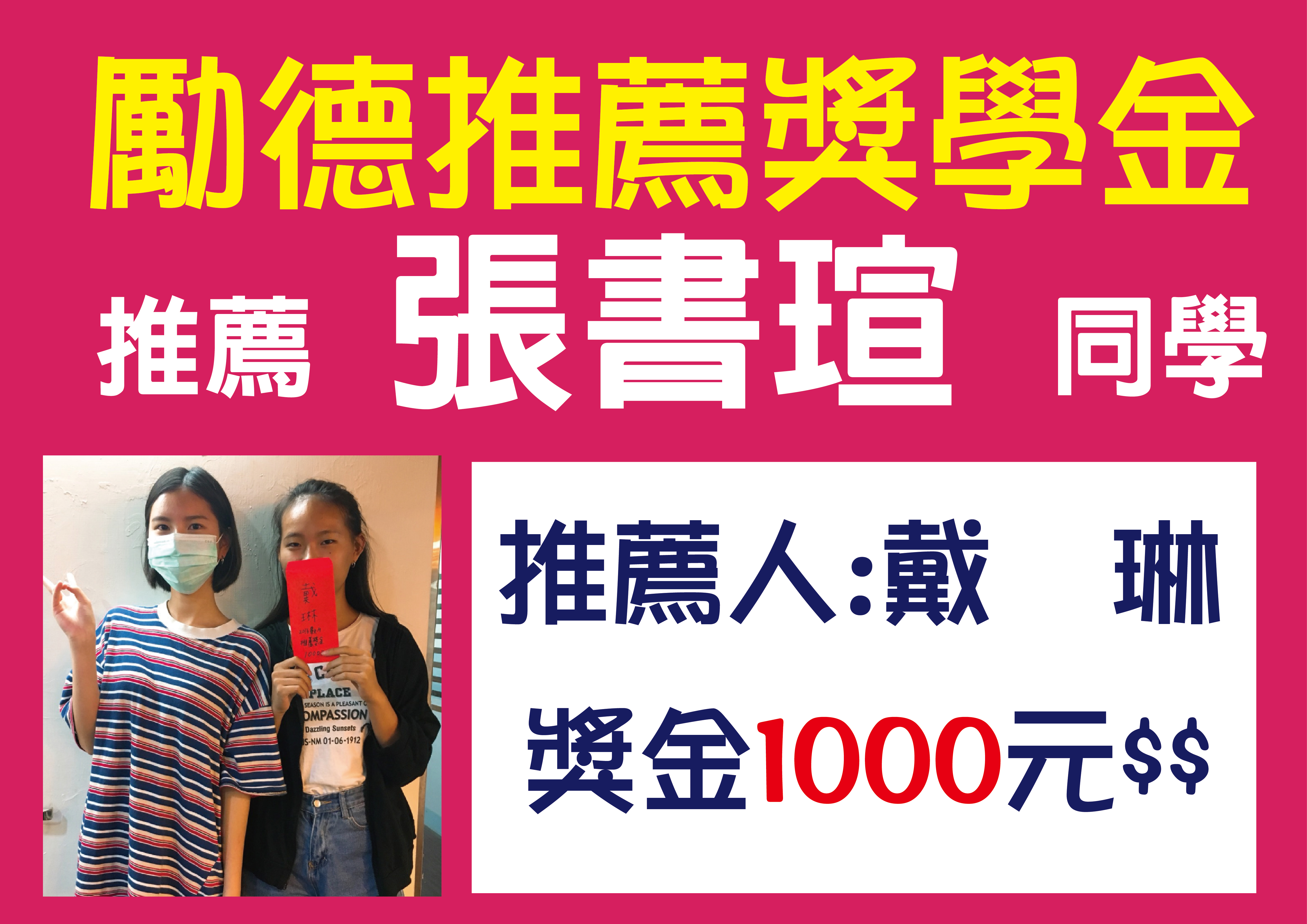 ▍推薦同學來勵德 ▍頒發獎學金囉
