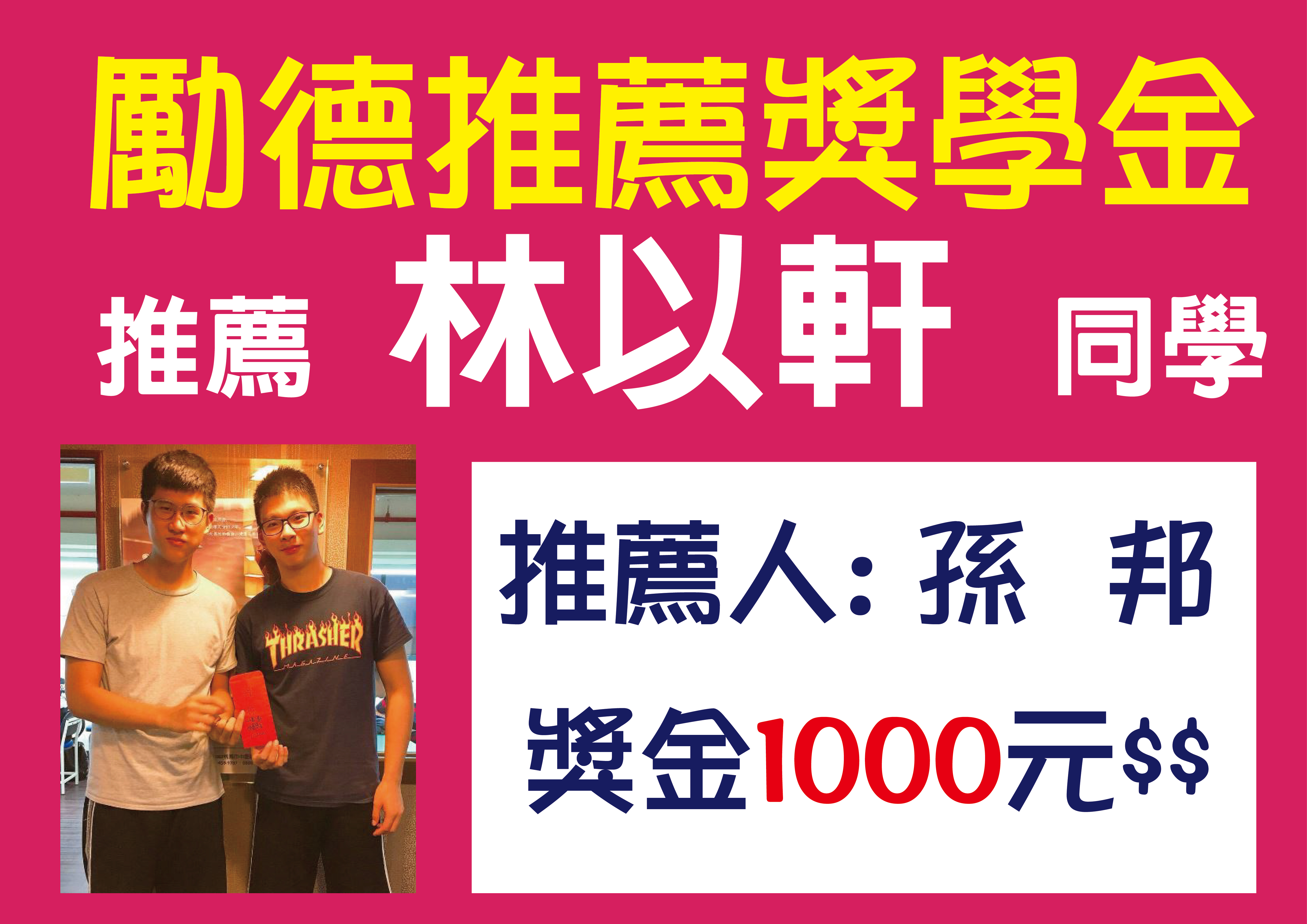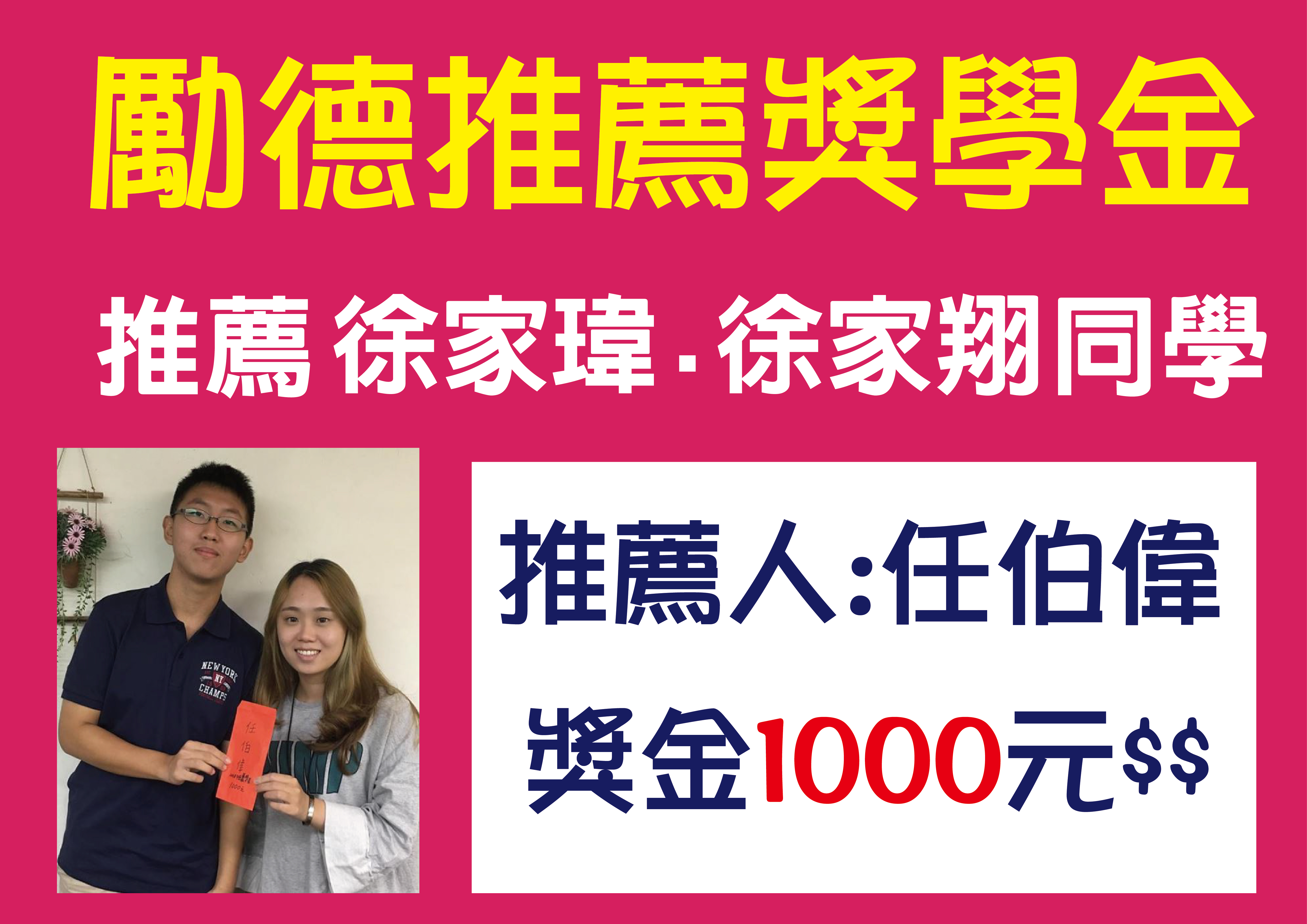 ▍推薦同學來勵德 ▍頒發獎學金囉