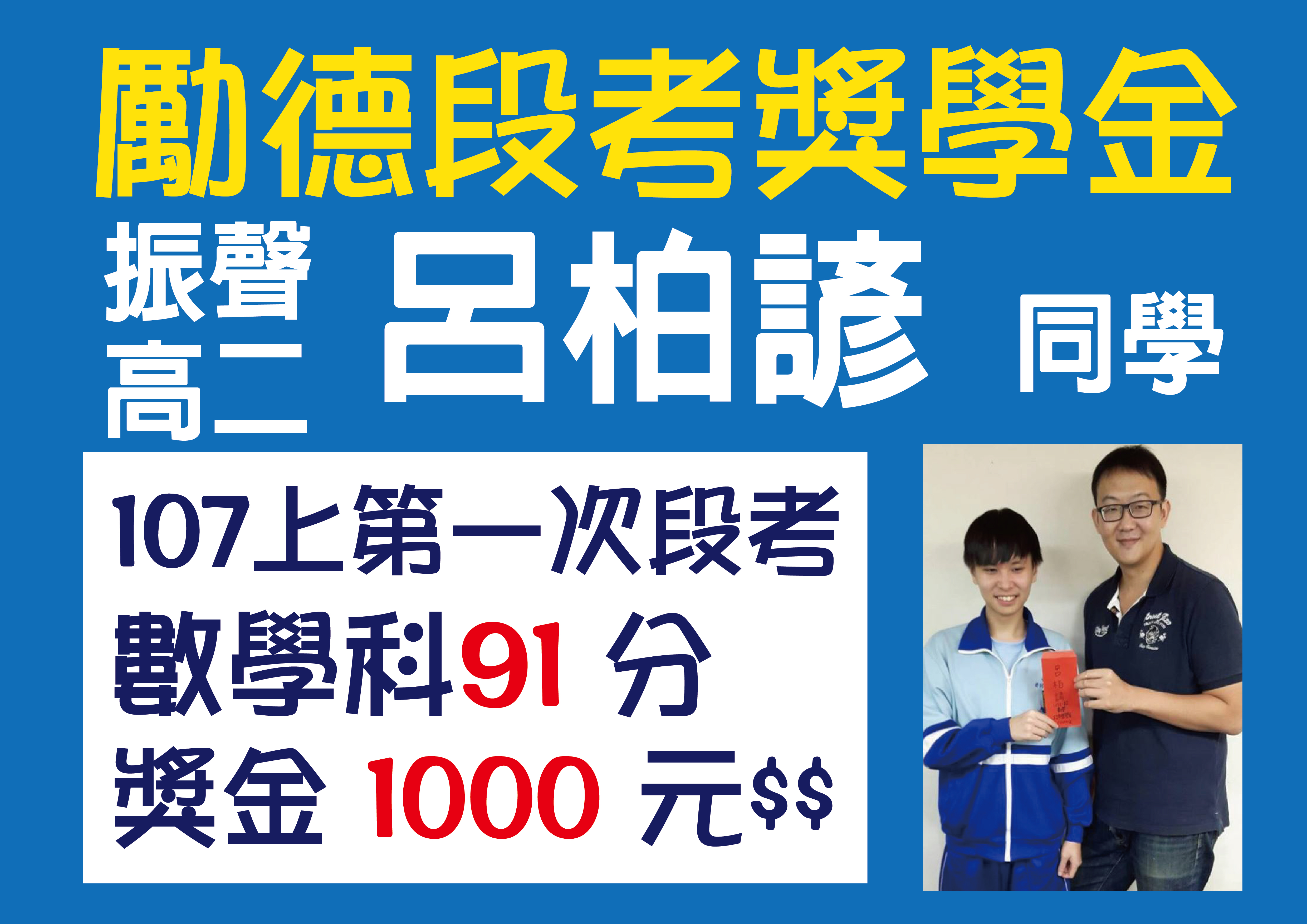 ▍107上第一次段考 ▍頒發獎學金