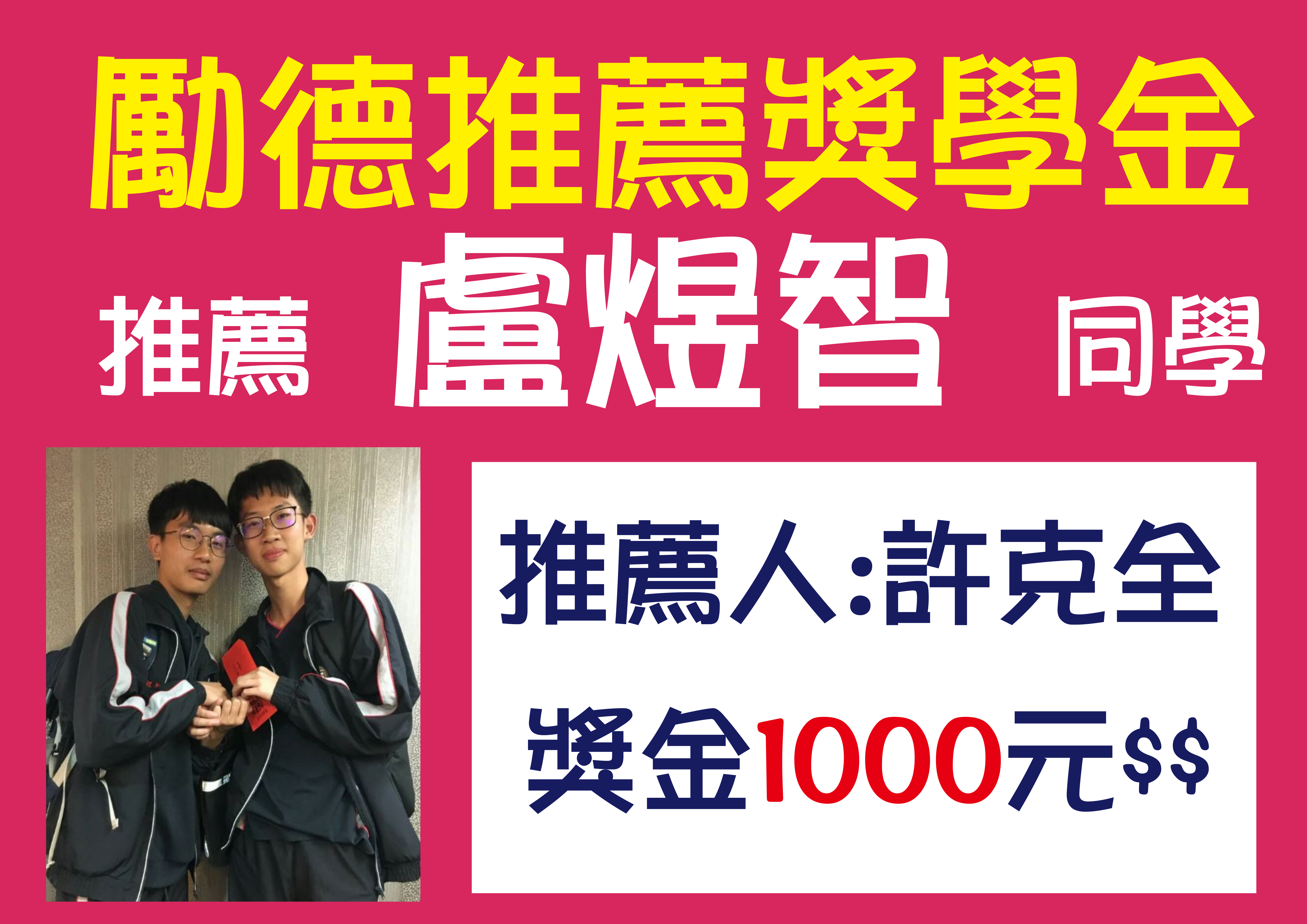 ▍推薦同學來勵德 ▍頒發獎學金囉