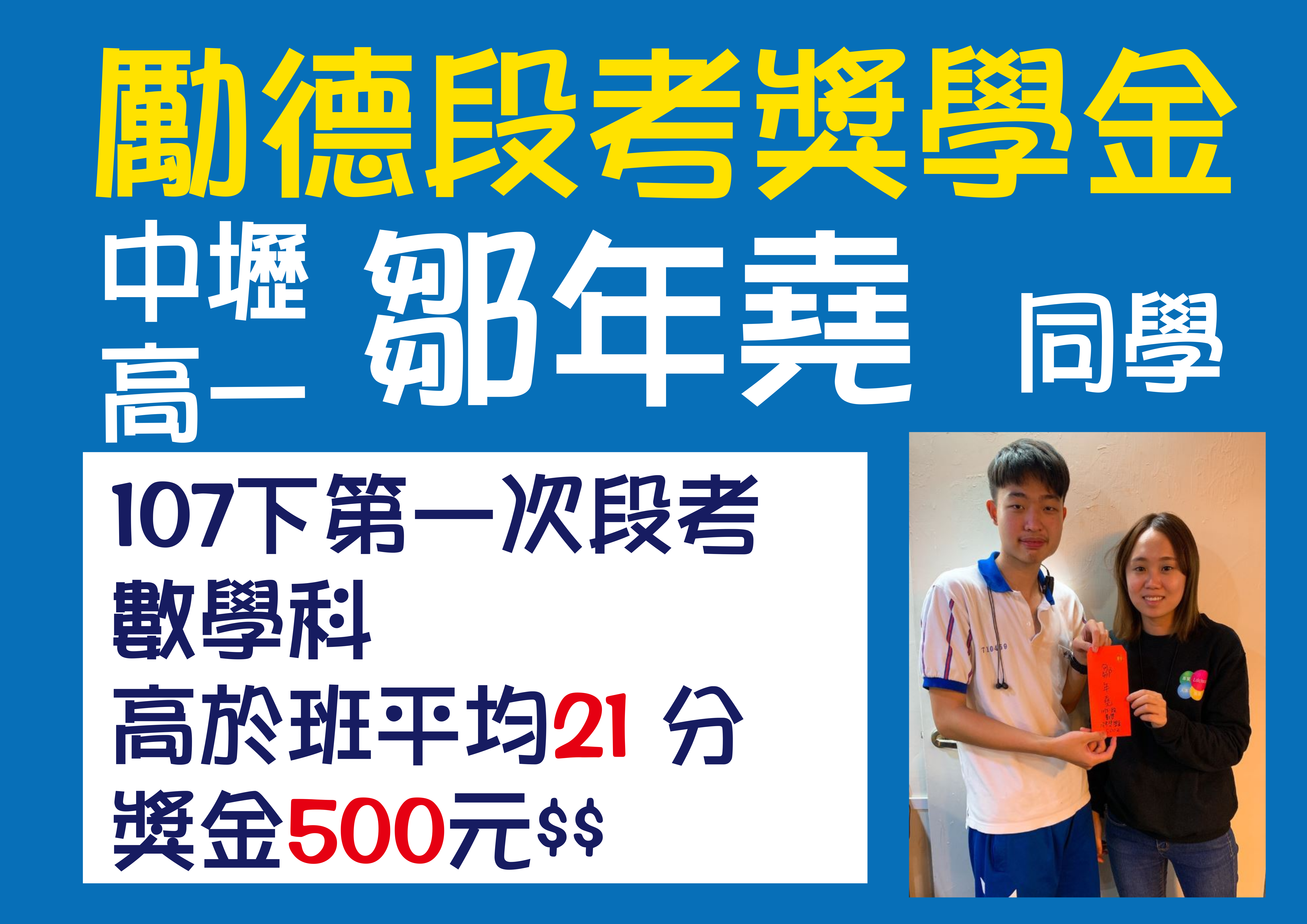 ▍107下第一次段考 ▍頒發獎學金