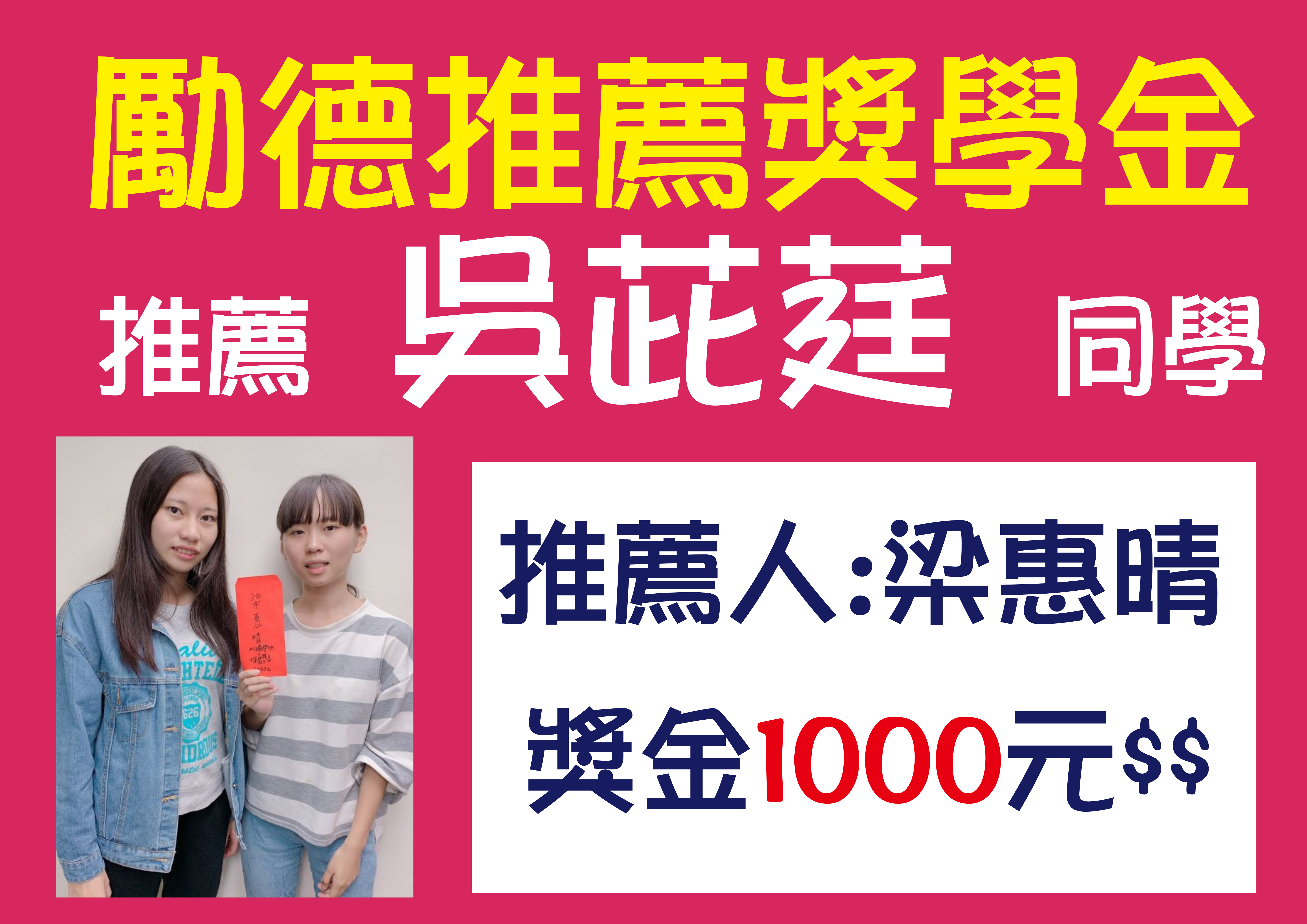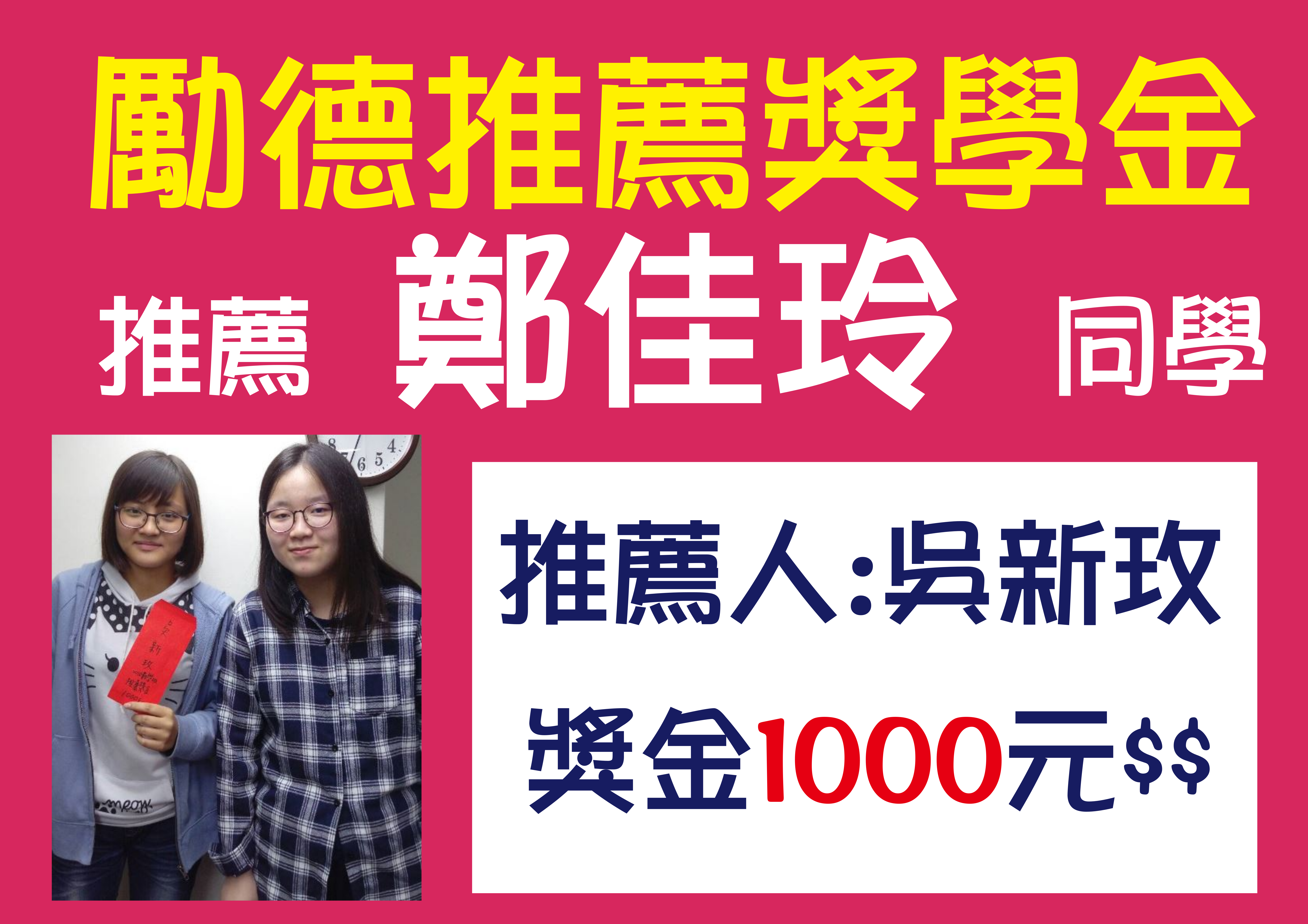 ▍推薦同學來勵德 ▍頒發獎學金囉