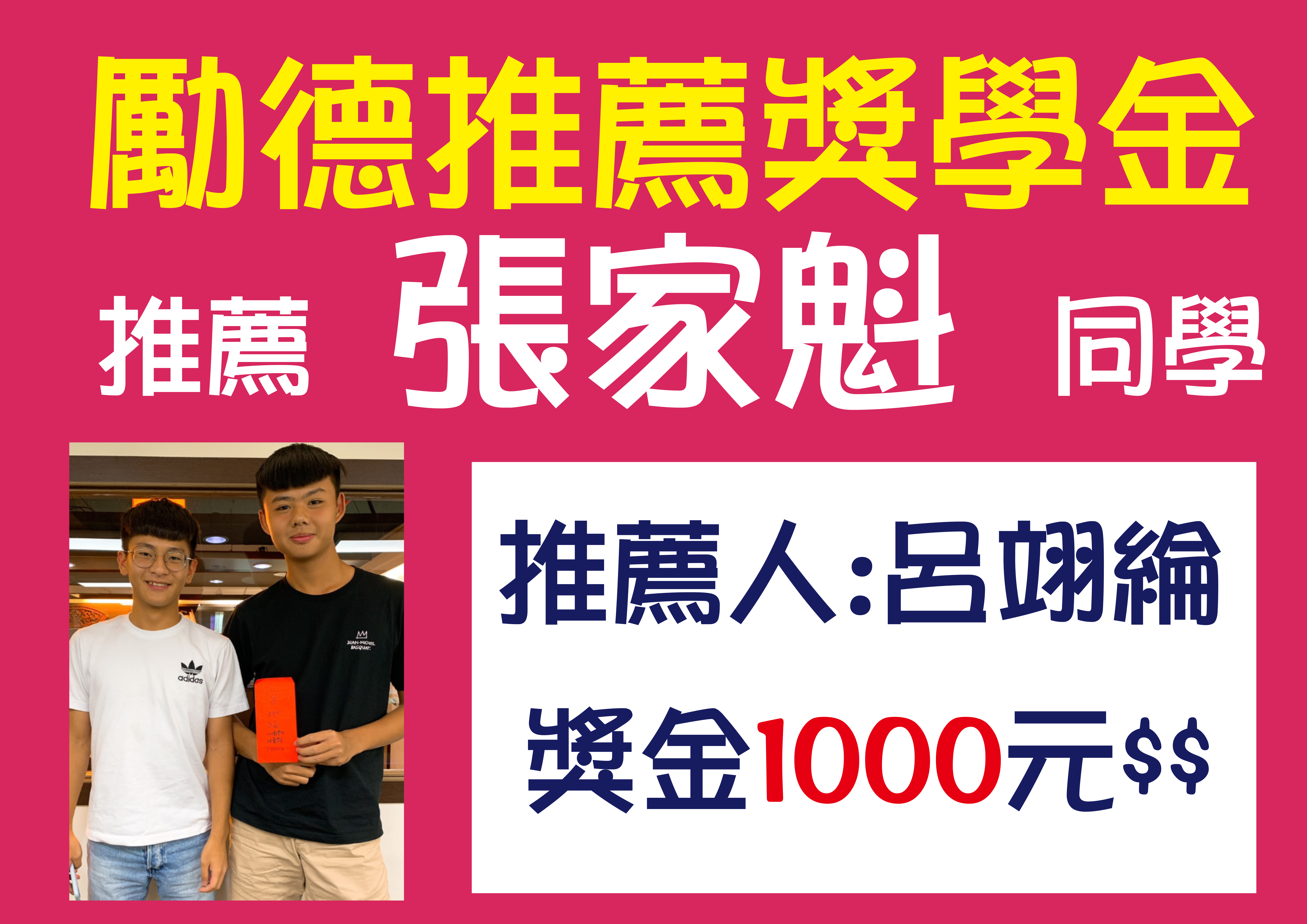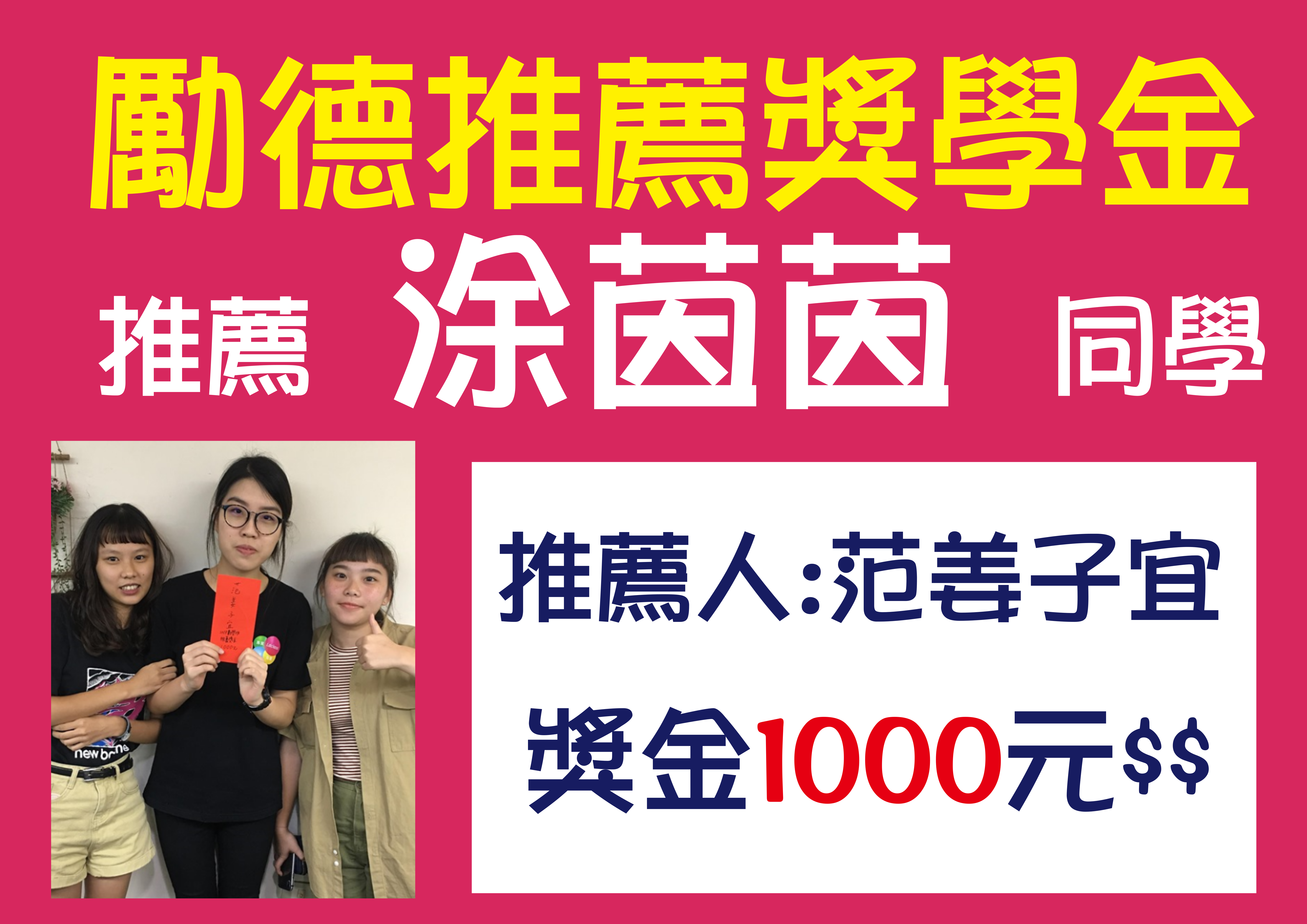 ▍推薦同學來勵德 ▍頒發獎學金囉